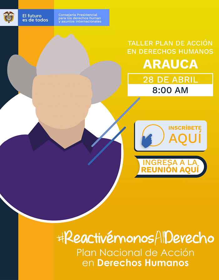 La Consejería Presidencial para los Derechos Humanos y Asuntos Internacionales te invita a participar al Taller Plan de Acción en Derechos Humanos para la construcción del Plan Nacional de Acción en Derechos Humanos 2021-2023.