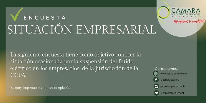 Invitamos a nuestros empresarios que diligencien la siguiente encuesta para medir el impacto a causa de la suspensión del fluido eléctrico.