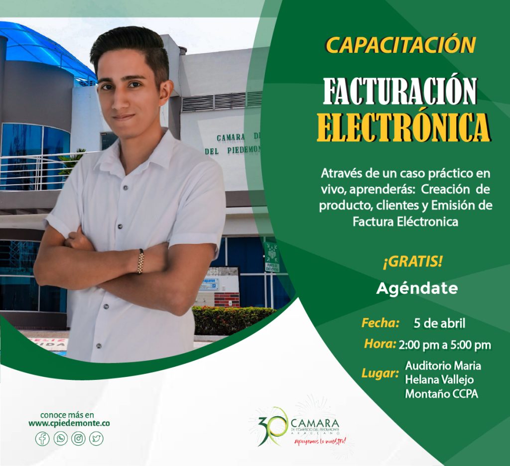 ¡Atención empresarios y emprendedores!✅ No te pierdas nuestra capacitación sobre 🧾Facturación Electrónica el 🗓️5 de abril, de 2:00 pm a 5:00 pm en el 📍Auditorio María Helena Vallejo Montaño de la CCPA. ✅Aprende sobre la creación de productos, clientes y emisión de facturas electrónicas💻 a través de un caso práctico. ¡No te quedes atrás en la transformación digital de tu negocio!🚀✨