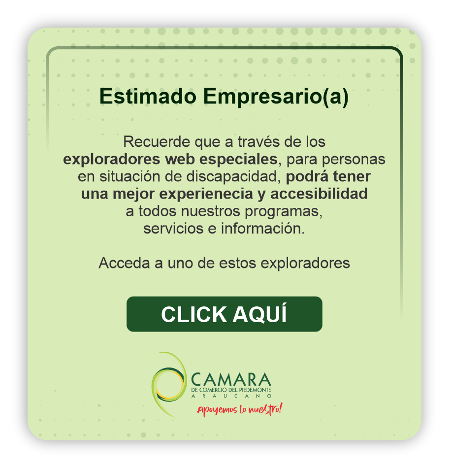 Dando cumplimiento a lo establecido en la Ley 1712 de 2014 Transparencia y Acceso a la Información Pública y la Resolución N° 1519 de 2020, la Cámara de Comercio del Piedemonte Araucano pone a disposición de la ciudadanía la siguiente información.